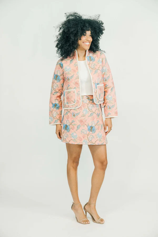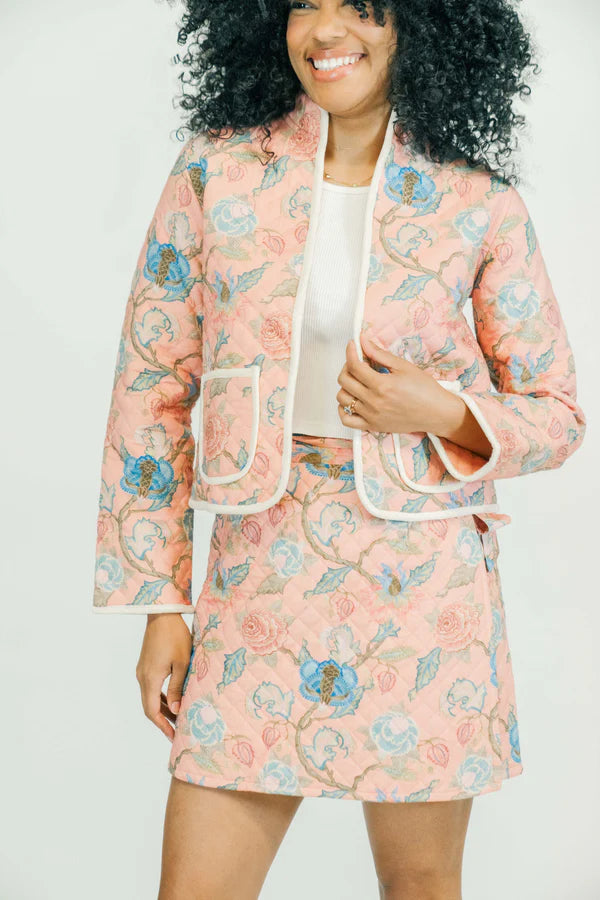 Embraced the quilted skirt trend with our Nola skirt. Featuring wrap waist with adjustable ties and hidden snap closure.